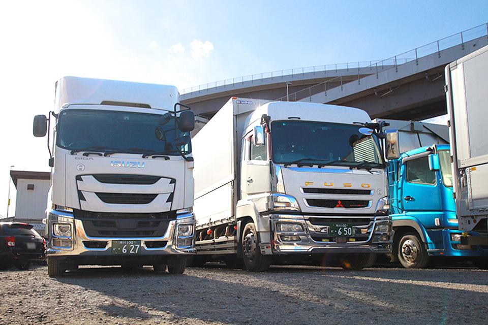 | 保有車種・台数 | トレーラーヘッド10台 10t低床バン車2台 10t低床W車2台 増t低床W車18台 増t低床WG車1台 1tバン車7台 (合計40台) |