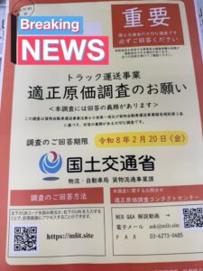 国土交通省から配布されている「適正原価調査のお願い」です。